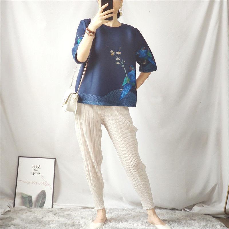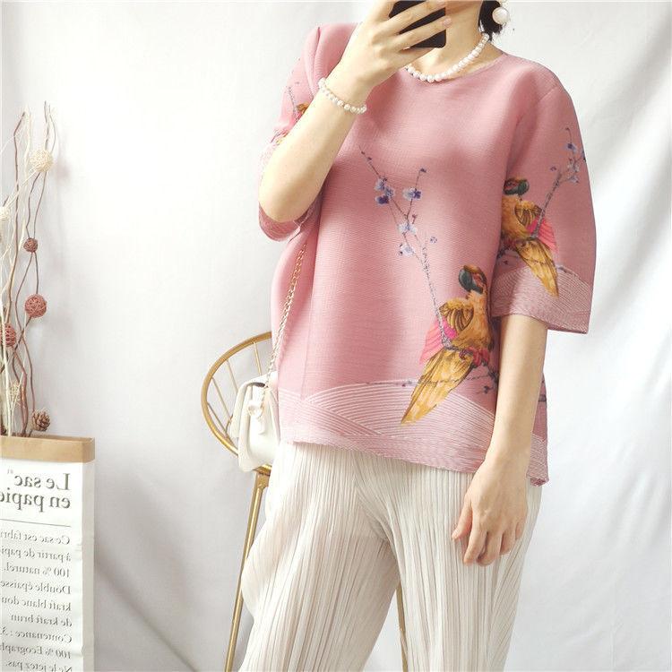 2022 летняя новая плиссированная свободная повседневная футболка в китайском стиле, дворец, ретро, модная куртка с цветочным принтом и птицами, женская футболка