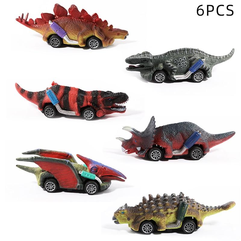 6 шт. игрушечных динозавров, заводные машинки, детские игрушки-динозавры, подходящие для детских игр с машинками-динозаврами