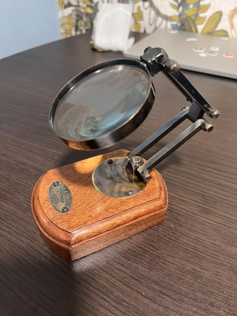 2. Точное увеличение: Это увеличительное стекло — не просто экспонат; это очень функциональный инструмент. Благодаря регулируемому увеличению он позволяет рассматривать сложные детали, мелкий шрифт и мелкие предметы с беспрецедентной четкостью.