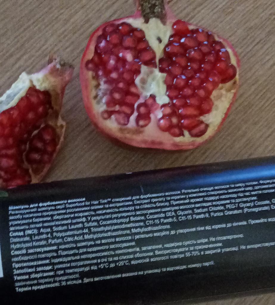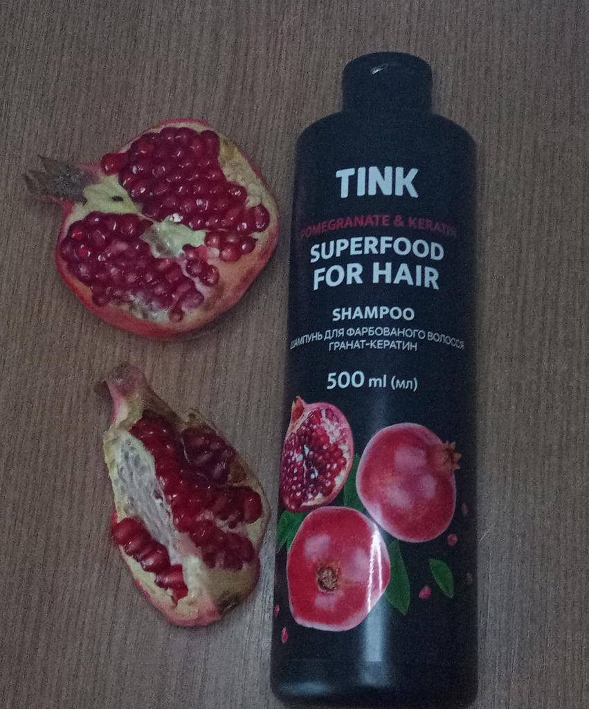 Регенерирующий шампунь из серии "Superfood for hair" торговой марки TINK👍 Для окрашенных волос, с экстрактом граната и кератином✨ ⏩Название серии средств "Суперпродукт" говорит само за себя. А гранат - один из ценнейших и полезнейших по части витаминов и антиоксидантов фрукт ⏩О пользе кератина тоже все наслышаны: повышает прочность волос, создаёт защитную оболочку на поверхности волос, предотвращает ломкость и сечение Так как я люблю гранаты, а волосы крашу с юности, выбрала именно этот шампунь. ❤️Объем большой - 500 мл; ✨Расход минимальный, так как шампунь густой, а дозатор удобный; ❤️Срок годности - 36 месяцев (3 года) с даты изготовления (шампунь произведен 29.03.2023); ✨Запах очень приятный и ненавязчивый, цвет полупрозрачный, почти "перламутровый"; ❤️Моет отлично, с первого раза волосы "скрипят", после мытья хорошо расчесываются Шампунь мне понравился, пользуюсь с удовольствием! 📬Особая благодарность продавцу за быструю доставку в ближайший почтомат и надёжную упаковку. Успехов вам в делах! Пусть покупки радуют💋