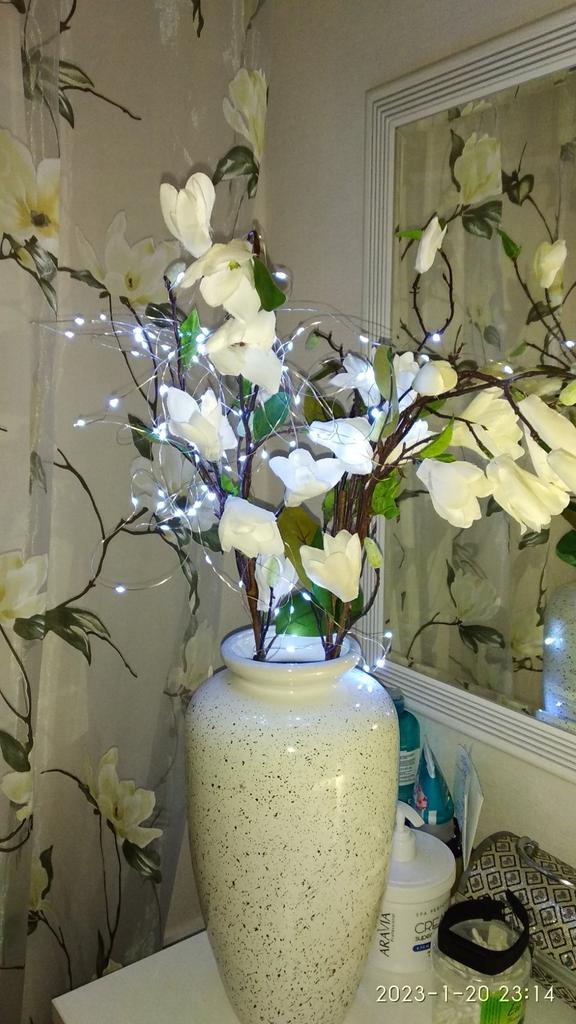 Посылку получила 2 цветка магнолии, один цветок пришел ещё до нового года,с эти два очень долго шли, получила 20 января, зака был сделан ещё в ноябре, но ничего дождалась наконец то, думала уже не придут, целый месяц не отслеживался с 12 декабря. Брала для интерьера к шторам, вроде подошло.