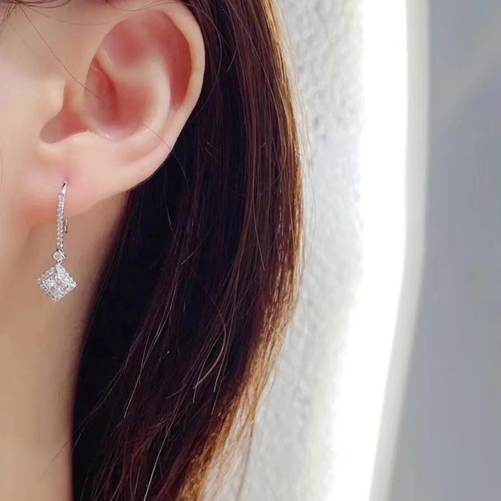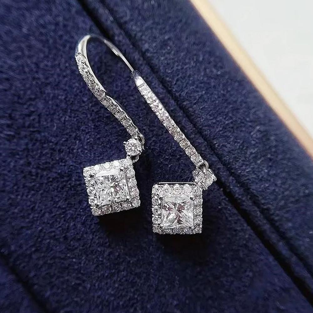 Новые висячие серьги с геометрическим кулоном для женщин, серебряные роскошные свадебные серьги с блестящим цирконием, ювелирные изделия
