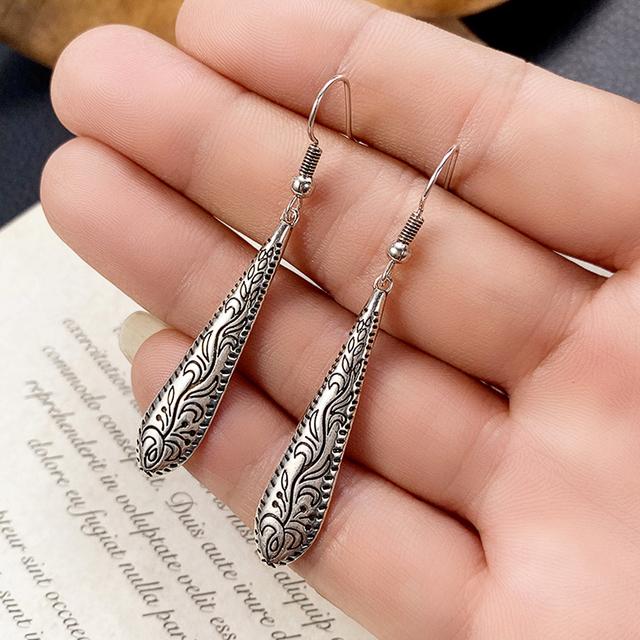 Новые длинные висячие серьги в форме капли воды с резным узором для женщин, металлические антисеребряные винтажные серьги, ювелирные изделия — купить товар онлайн с бесплатной доставкой по всему миру!