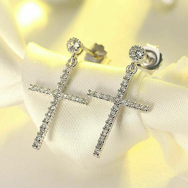 Новые женские висячие серьги с крестом, микро-асфальтированный кубический цирконий, простые стильные аксессуары для девочек, повседневная одежда, ювелирные изделия для вечеринок