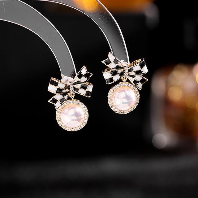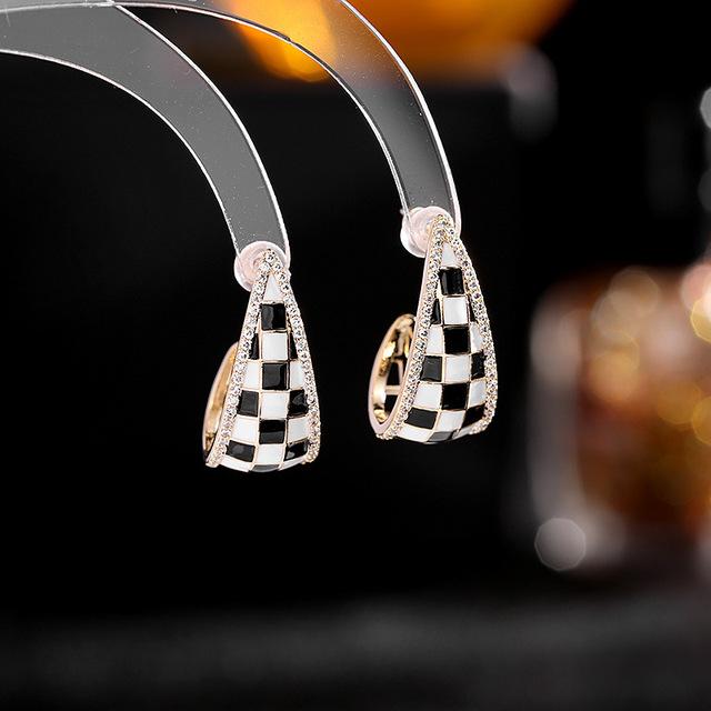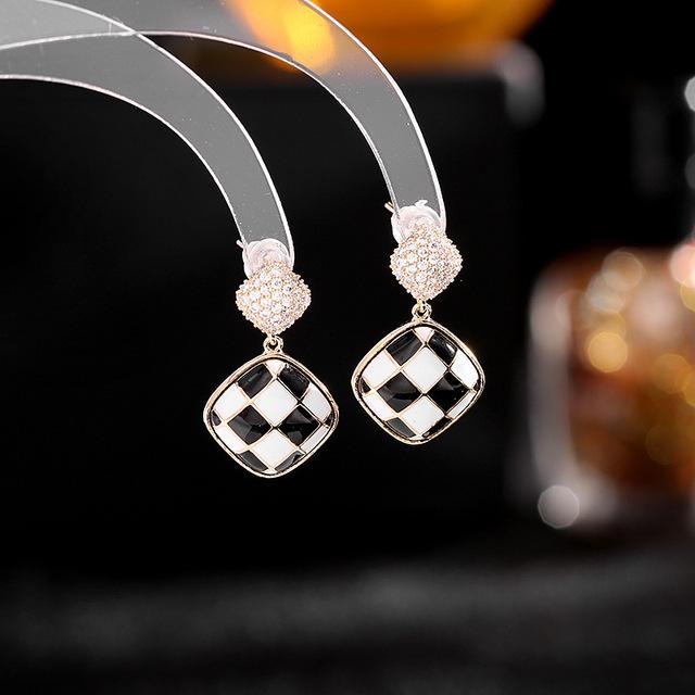 Корейские модные геометрические серьги, дизайнерские массивные черно-белые решетчатые висячие серьги, женские роскошные ювелирные изделия с камнем CZ