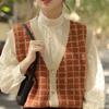 Зеленый клетчатый полосатый вязаный кардиган во французском стиле ретро, жилет, женский весенне-осенний модный новый свитер с v-образным вырезом, женское пальто