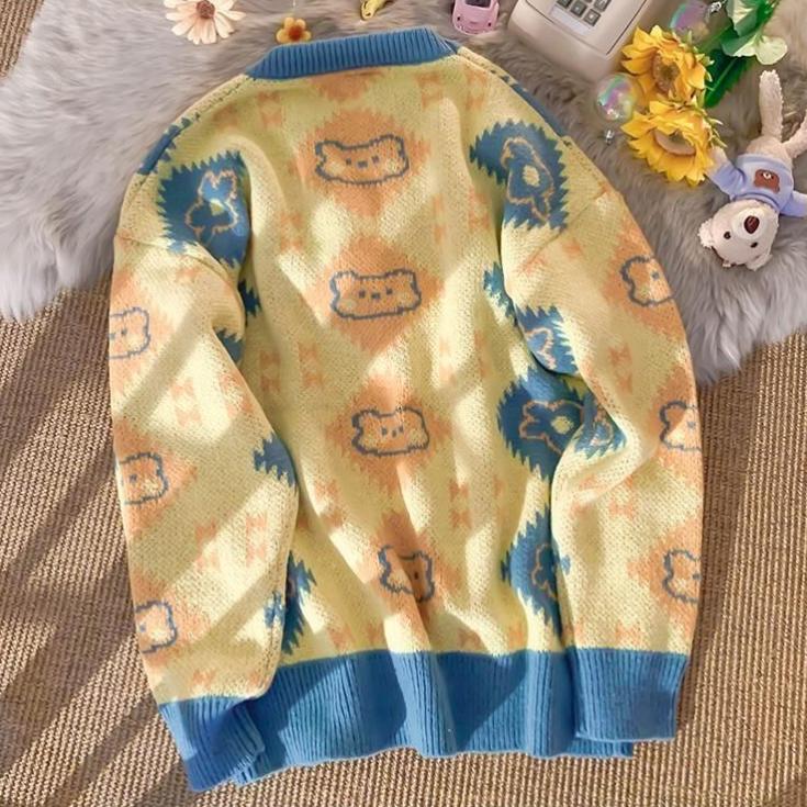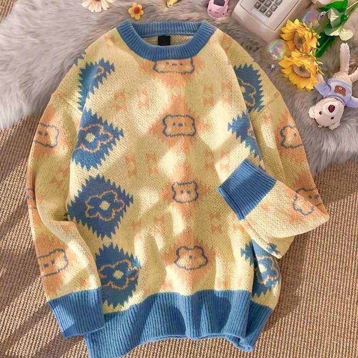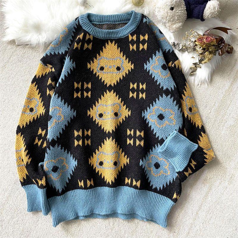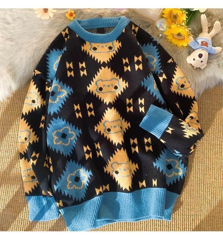 Японский пуловер, свитер, мягкий молочный ретро-медведь, свободный свитер, пальто, женский осенне-зимний повседневный свитер с круглым вырезом, женские топы