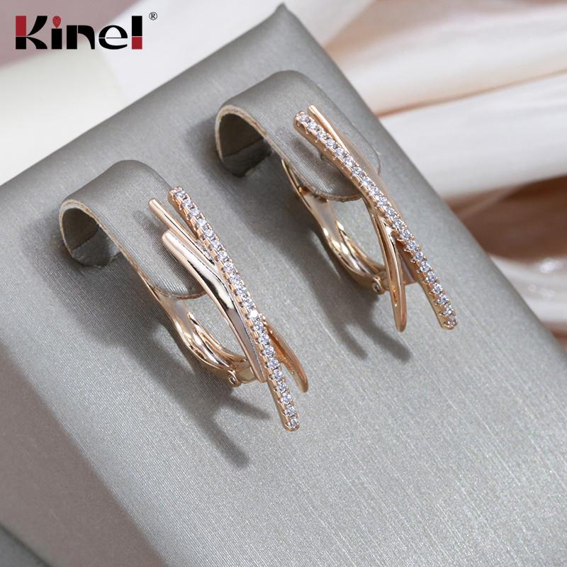Длинные модные английские серьги Kinel цвета розового золота для женщин, винтажные изысканные ювелирные изделия с цирконом