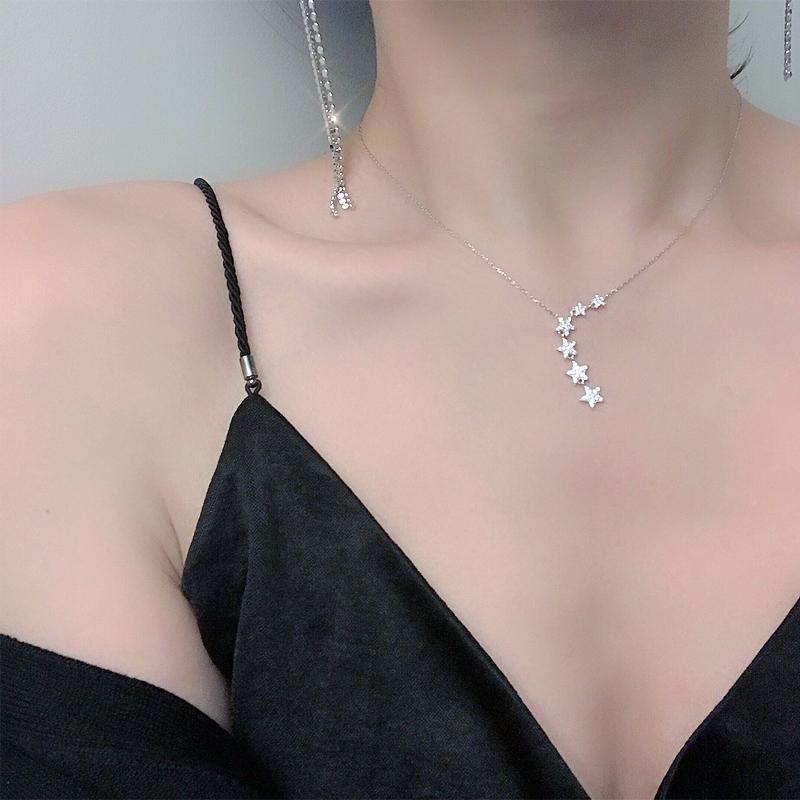 Элегантное колье из стерлингового серебра 925 пробы с блестящим цирконием и звездой, серебряное простое подарочное ожерелье для девочек, женское вечерние ювелирные изделия NK002