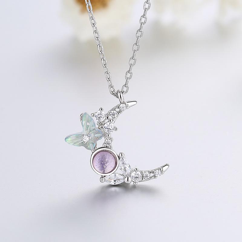 Ожерелье с кулоном Dazzle Crystal Butterfly Dewdrop Moon для женщин, изысканное серебряное ожерелье S925 для девочек, романтические украшения