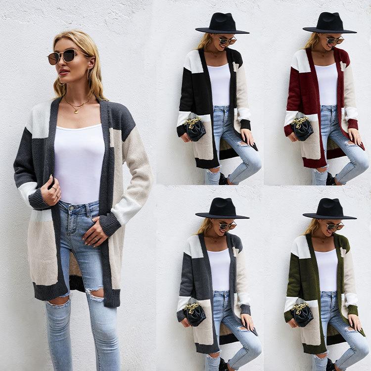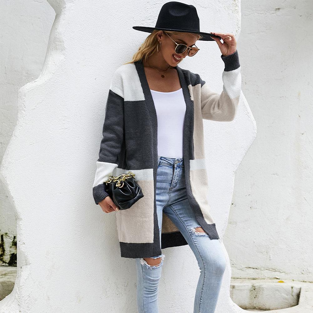 Свободный вязаный кардиган большого размера в тон, модный женский свитер-пальто