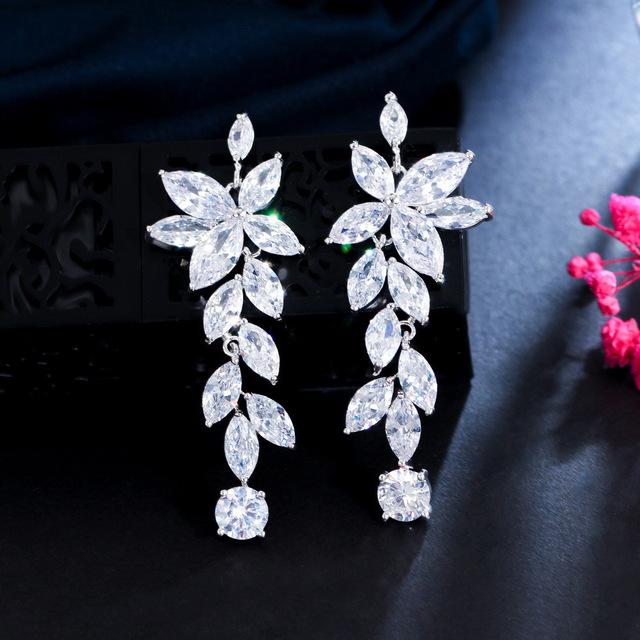 Сверкающие серьги-капли AAA с кубическим цирконием и цветком, женские элегантные модные висячие серьги на свадьбу, помолвку, ювелирные изделия для невесты, подарок — купить товар онлайн с бесплатной доставкой по всему миру!