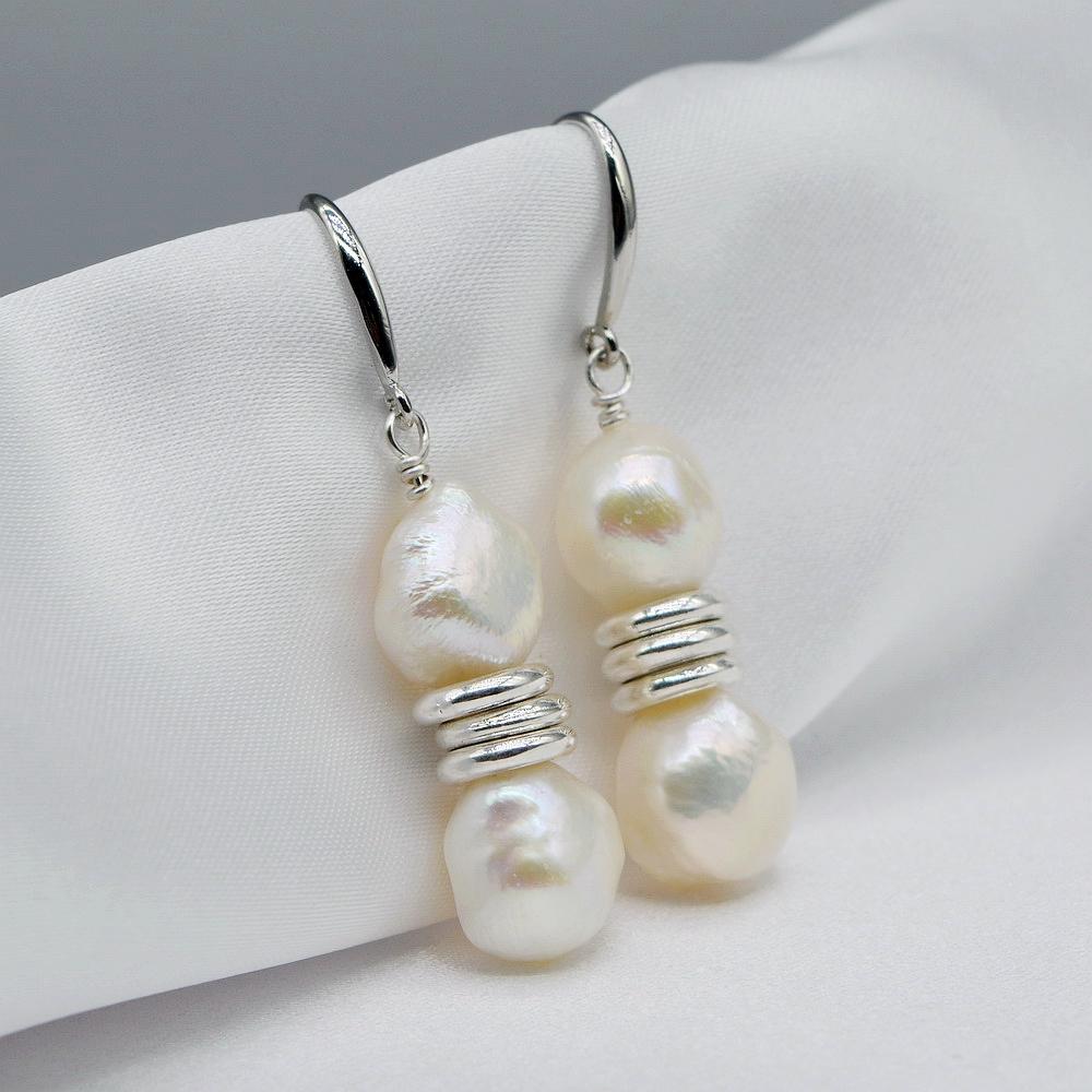 Простые серьги из натурального пресноводного жемчуга, серебряные кольца, аксессуары, женские серебряные серьги, жемчуг в стиле барокко, женские серьги