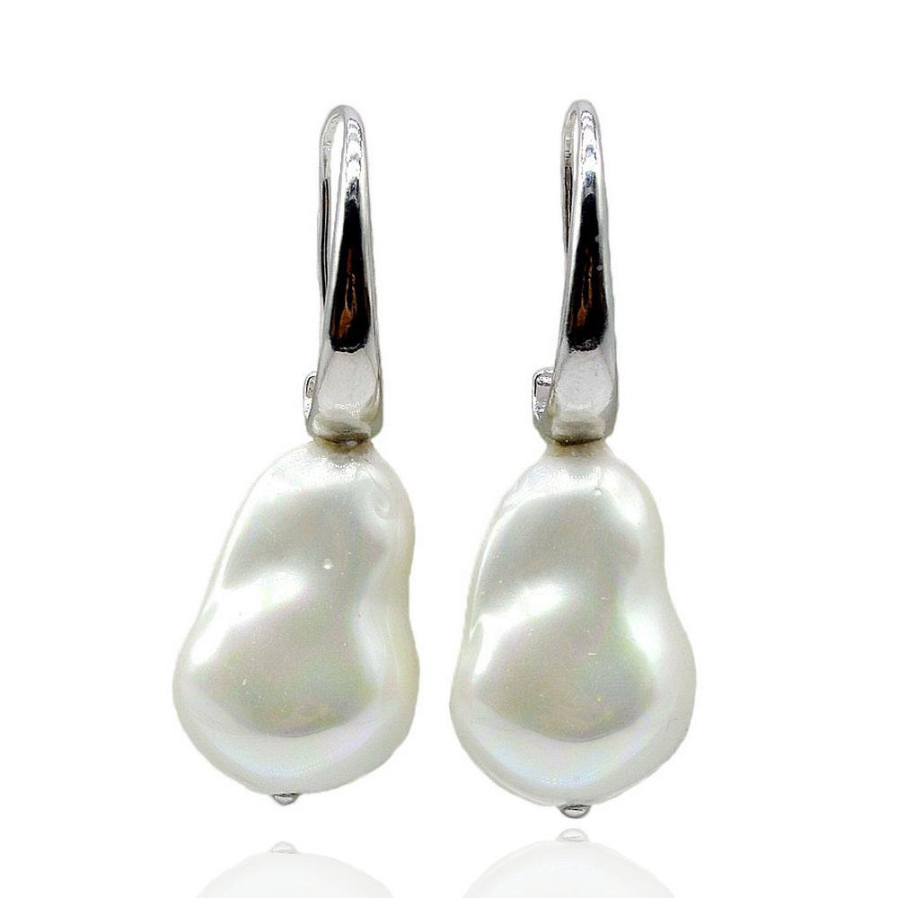 Большие жемчужные серьги для женщин, серебряные серьги в форме ракушки с имитацией жемчуга в форме барокко, серьги в стиле бохо для женщин — купить товар онлайн с бесплатной доставкой по всему миру!