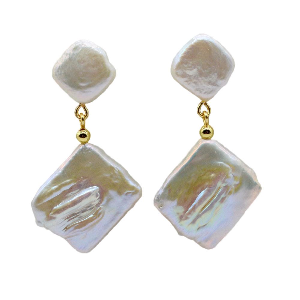 Геометрические серьги, белый натуральный пресноводный жемчуг, золотые серьги в стиле барокко, плоские квадратные серьги-капли, жемчужные серьги для женщин