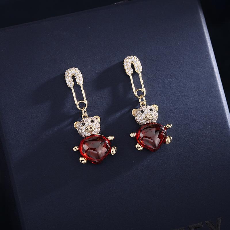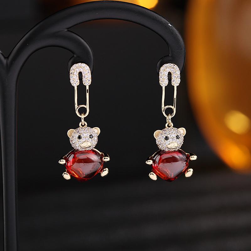 Милые серьги с медведем, эмаль, цирконий, висячие украшения в виде животных, новинка 2022, модные ювелирные изделия, креативные красные серьги для женщин