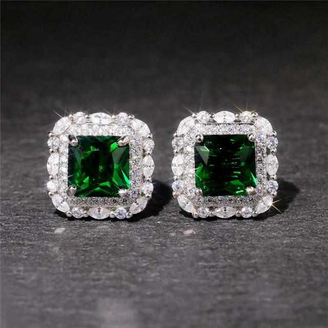 Новые винтажные зеленые серьги-гвоздики с фианитом для леди, танцевальной вечеринки, роскошные аксессуары для ушей, подарок на годовщину, день рождения, женские украшения
