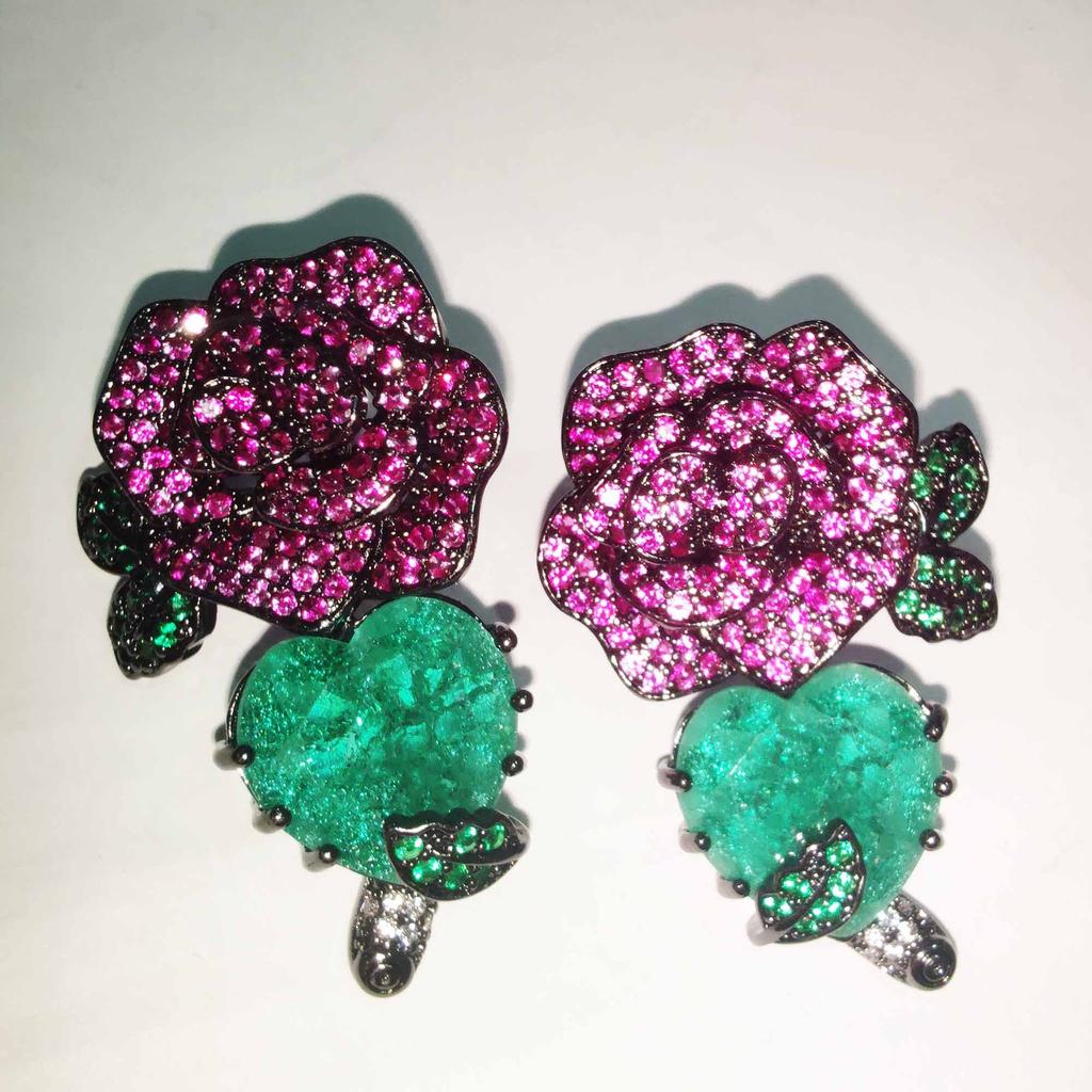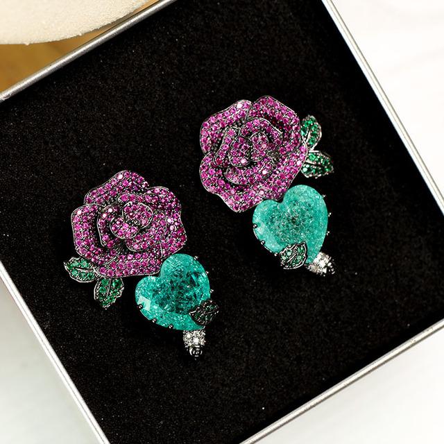 Модные модные блестящие серьги-гвоздики с розой и камелией в форме сердца для женщин, женские висячие серьги, модные ювелирные аксессуары