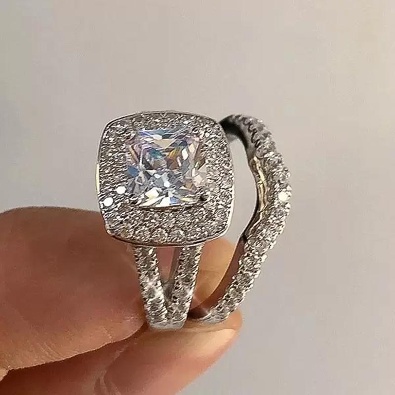 Новые свадебные тенденции, комплект ювелирных изделий, кольца для женщин, инкрустация блестящими фианитами, элегантные свадебные кольца, модные аксессуары высокого качества