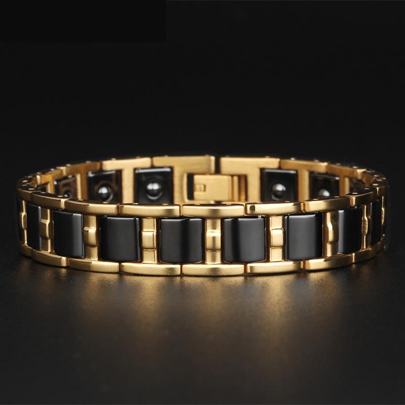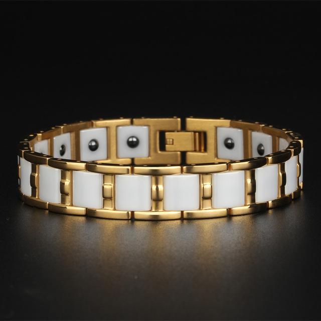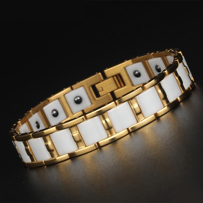 Мужской браслет Healthy Balance, блестящие золотые браслеты из нержавеющей стали для женщин, черный/белый керамический браслет, ювелирные изделия