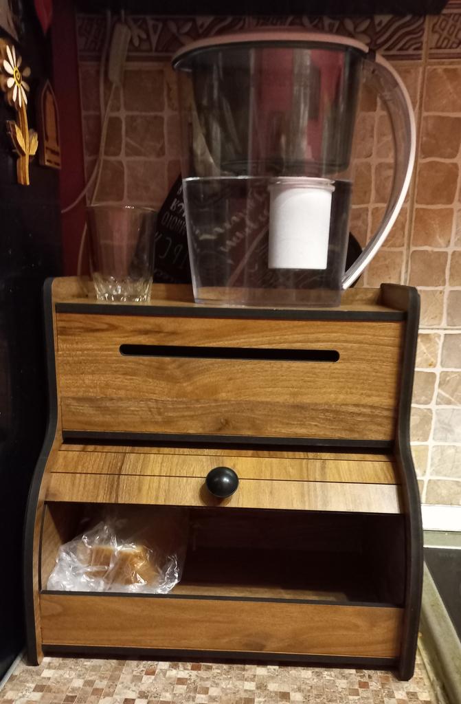 Пришла хлебница вся разобранная, но к счастью собирается легко. Я довольна в целом хотя мелкие недочёты имеются, немного слезло покрытие в нескольких местах и можно было бы упаковать получше она там вся гремела по коробке так как не было упора. Хлипенькая, но всё равно супер.