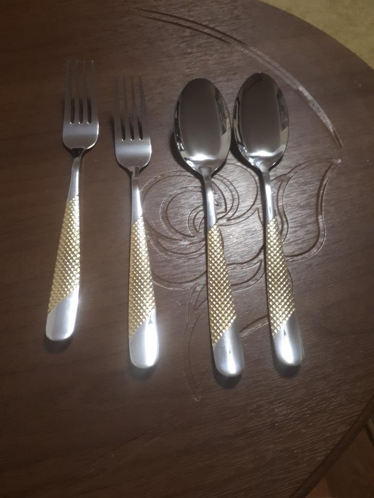 Столовый набор 24 предмета, серебро-золото, смотрится отлично, всем спасибо, рекомендую!!!