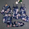 Женские пижамы, удобный сексуальный комплект из пяти предметов, домашнее платье, нижнее белье, шелковая тонкая секция с нагрудной подушечкой, ночная рубашка, женская ночная рубашка