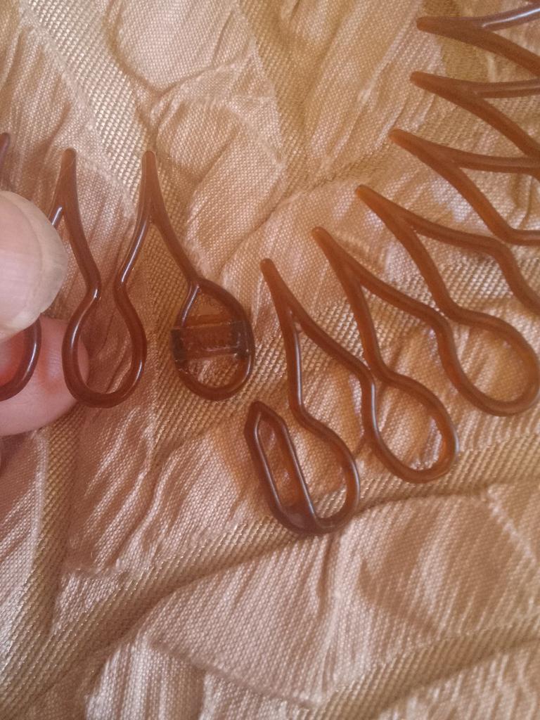 Давно такими заколками пользуюсь. Для дома вещь незаменимая - волосы не мешают, в глаза не лезут. Со временем растягиваются, нужно менять. На какое-то время совсем пропали из продажи, заказала на Джуме, 3шт.= 201 руб. Пока ждала, пробегала мимо киоска Роспечати и ба! Они опять в продаже (чёрные), 20 руб. штучка! Но те, что пришли в заказе (прозрачно-белые) - лучше - более мягкий пластик, не царапаются, на голове совсем не чувствуются и не стягивают волосы.