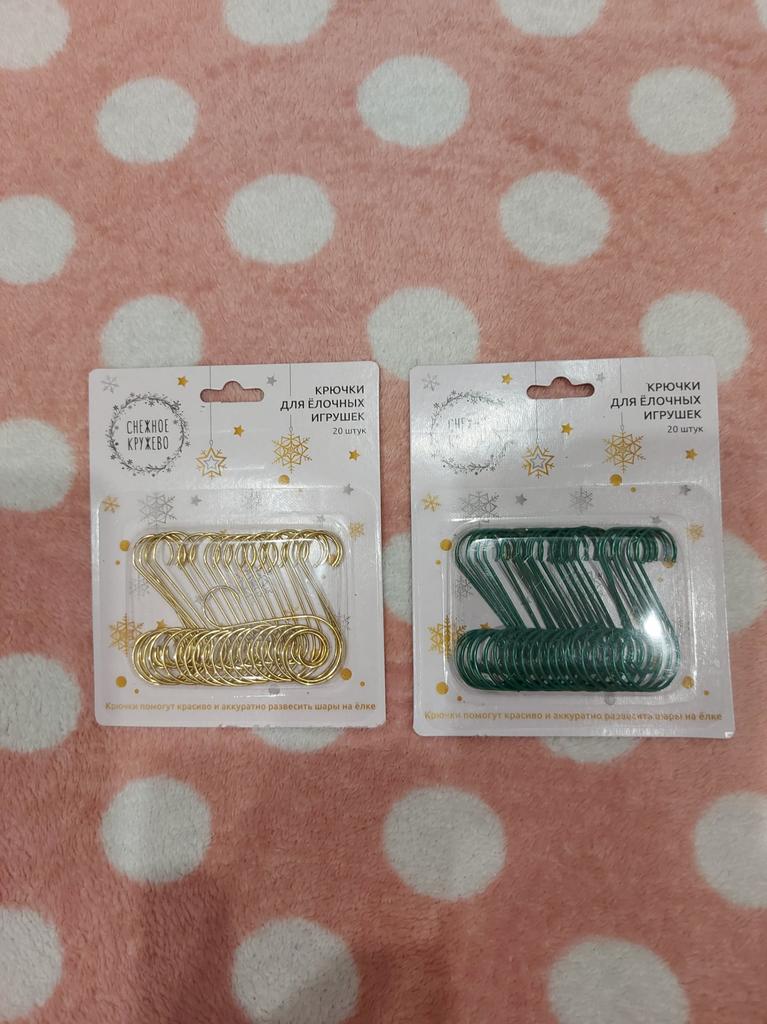 Металличнскими S-образными крючками пользуюсь давно и постоянно. Цвет не имеет значения, их практически не видно. Использую не только для новогодних украшений,но и при оформлении различного декора. Мне нравятся. Рекомендую.