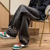 Мужская мода Y2K Одежда Винтажные роскошные джинсы Мужчины Огненная вышивка Высококачественные мешковатые прямые брюки Джинсовые брюки Джинсы для мужчин Уличная одежда