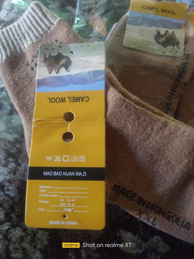 На 42размер ног размер XXL как раз. Кстати на самих носках написано made in Mongolia XXL, на этикетке написано made in china и есть информация на русском языке! Не знаю как на счёт верблюжьей шерсти, я не эксперт но носки мягкие, толстенькие. Покупкой доволен. Рекомендую!