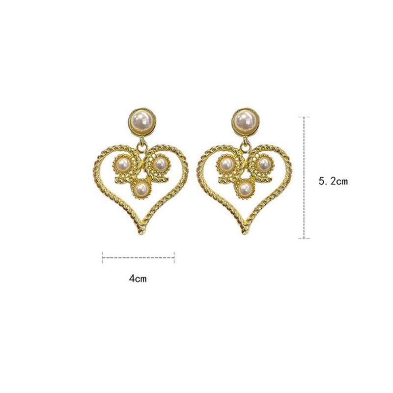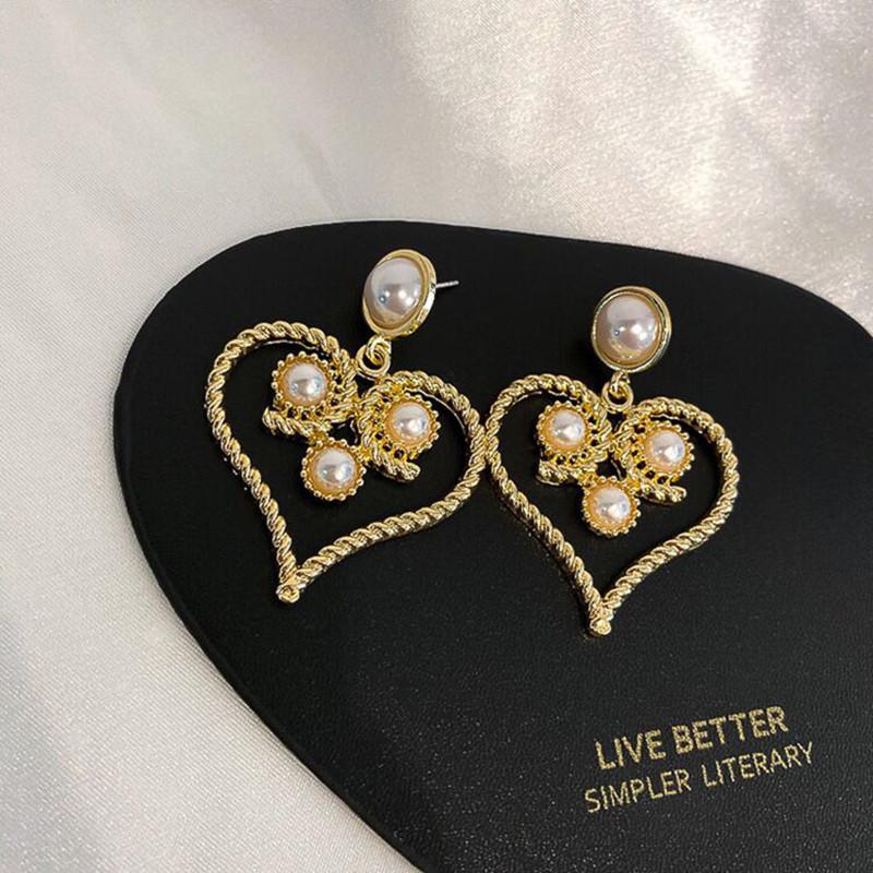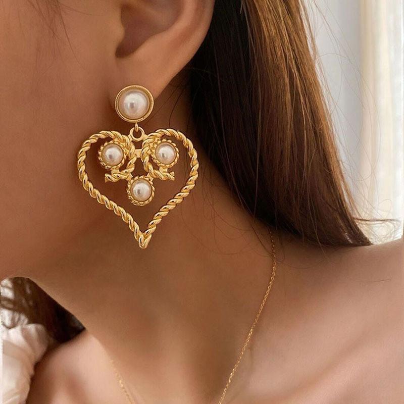 Женские серьги с жемчугом и сердцем в стиле ретро, золотые серьги в стиле барокко, полые серьги для вечеринки, элитные серьги, модные украшения