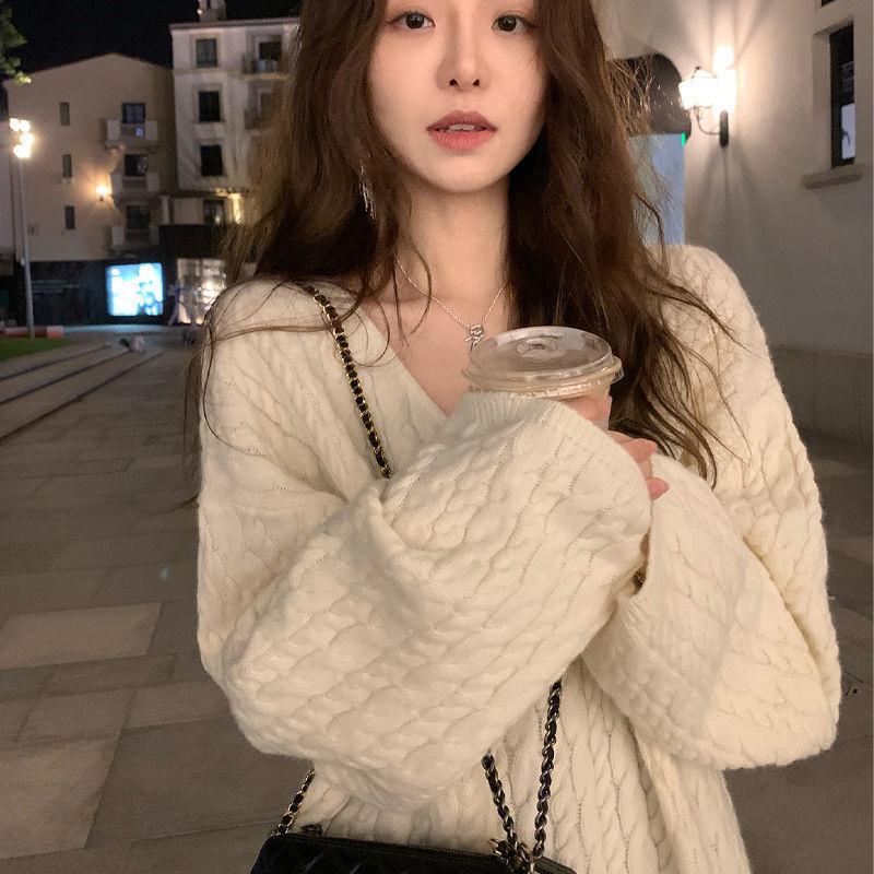 Свободный пуловер в стиле ретро, женский пуловер с v-образным вырезом, женский мягкий восковой милый верхний трикотажный свитер, женский — купить товар онлайн с бесплатной доставкой по всему миру!