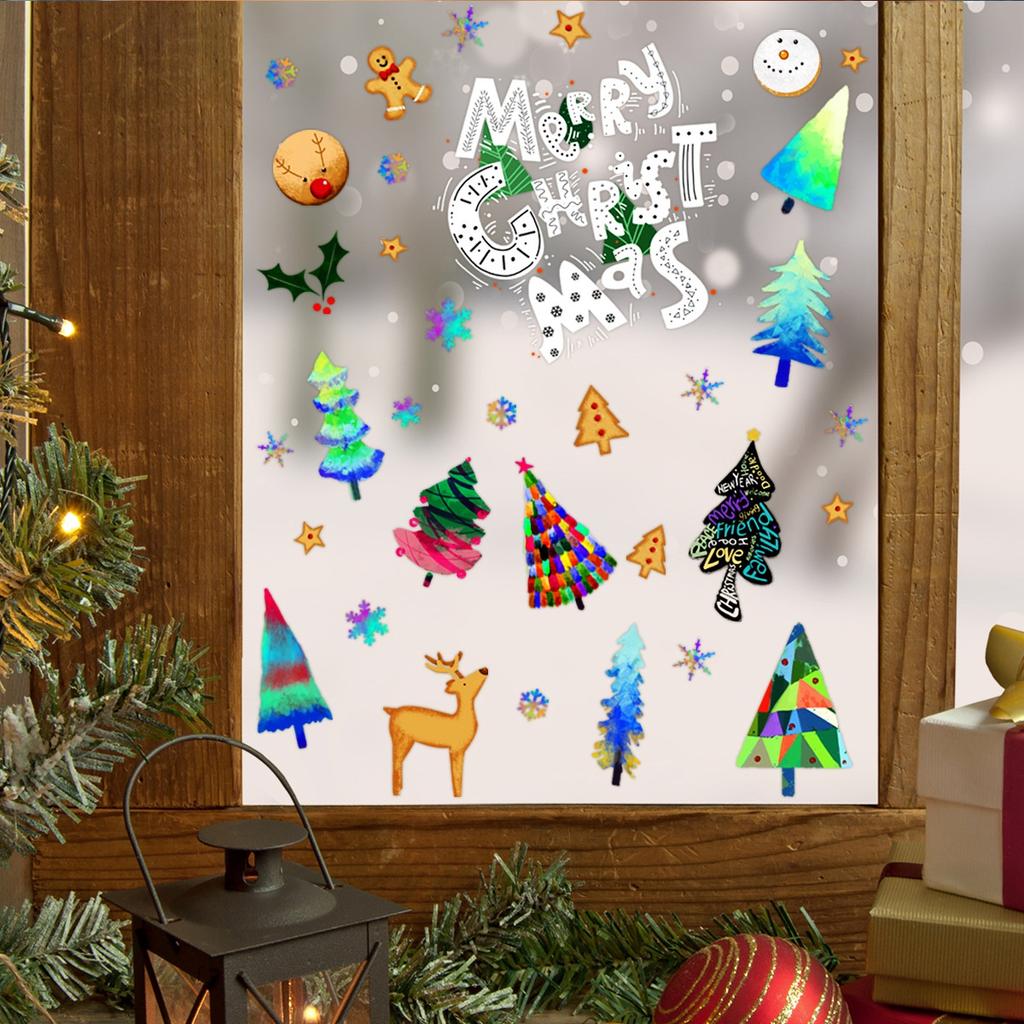Новые веселые рождественские электростатические стеклянные наклейки для украшения окон в гостиной, настенные наклейки
