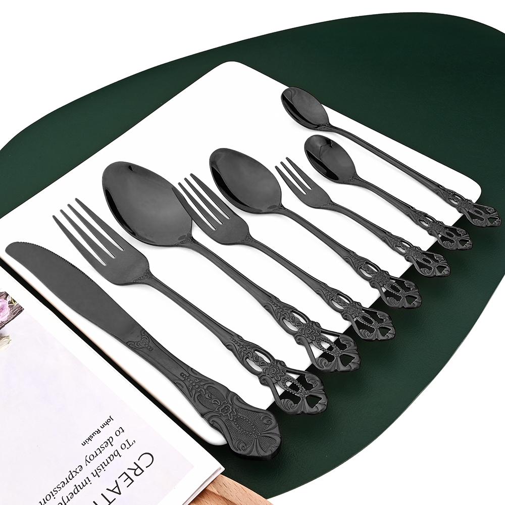 Черный кухонный набор столовых приборов, 1 шт., нож, десертная вилка, чайная ложка, набор столовых приборов, столовые приборы из нержавеющей стали, винтажный набор посуды — купить товар онлайн с бесплатной доставкой по всему миру!