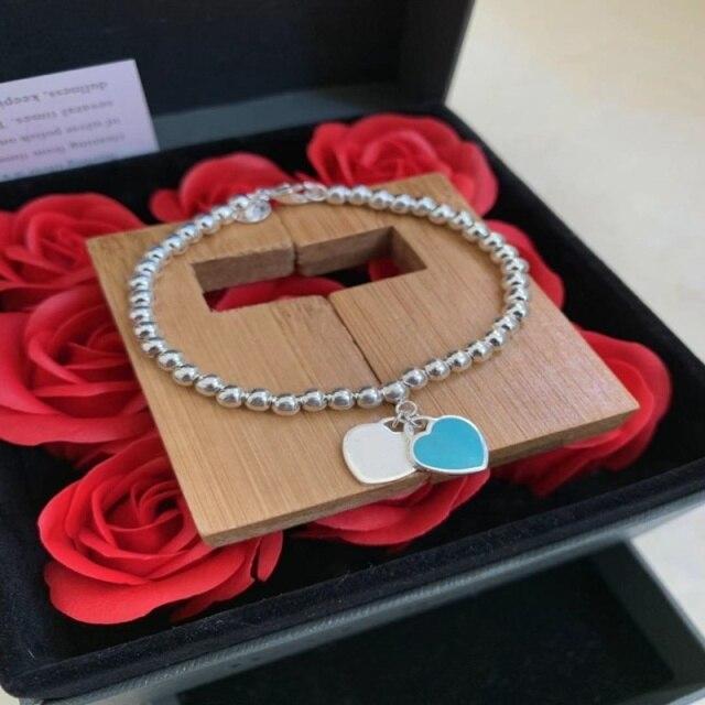 Классический T Синий Двойной Браслет Сердце Дизайнер S925 Серебряный Браслет Из Бисера Модный Стиль Браслет-Подвеска Женские Ювелирные Изделия