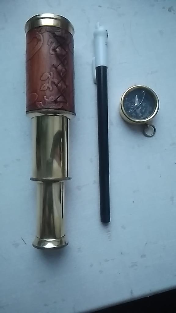 Полностью латунный и кожаный корпус со стеклянными линзами и красивой резьбой по коже.