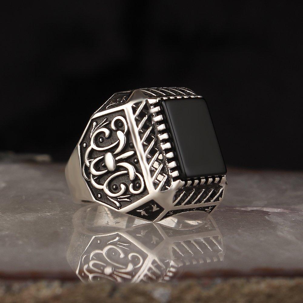 Мужское кольцо из стерлингового серебра 925 пробы с украшениями из оникса — купить товар онлайн с бесплатной доставкой до всему миру!