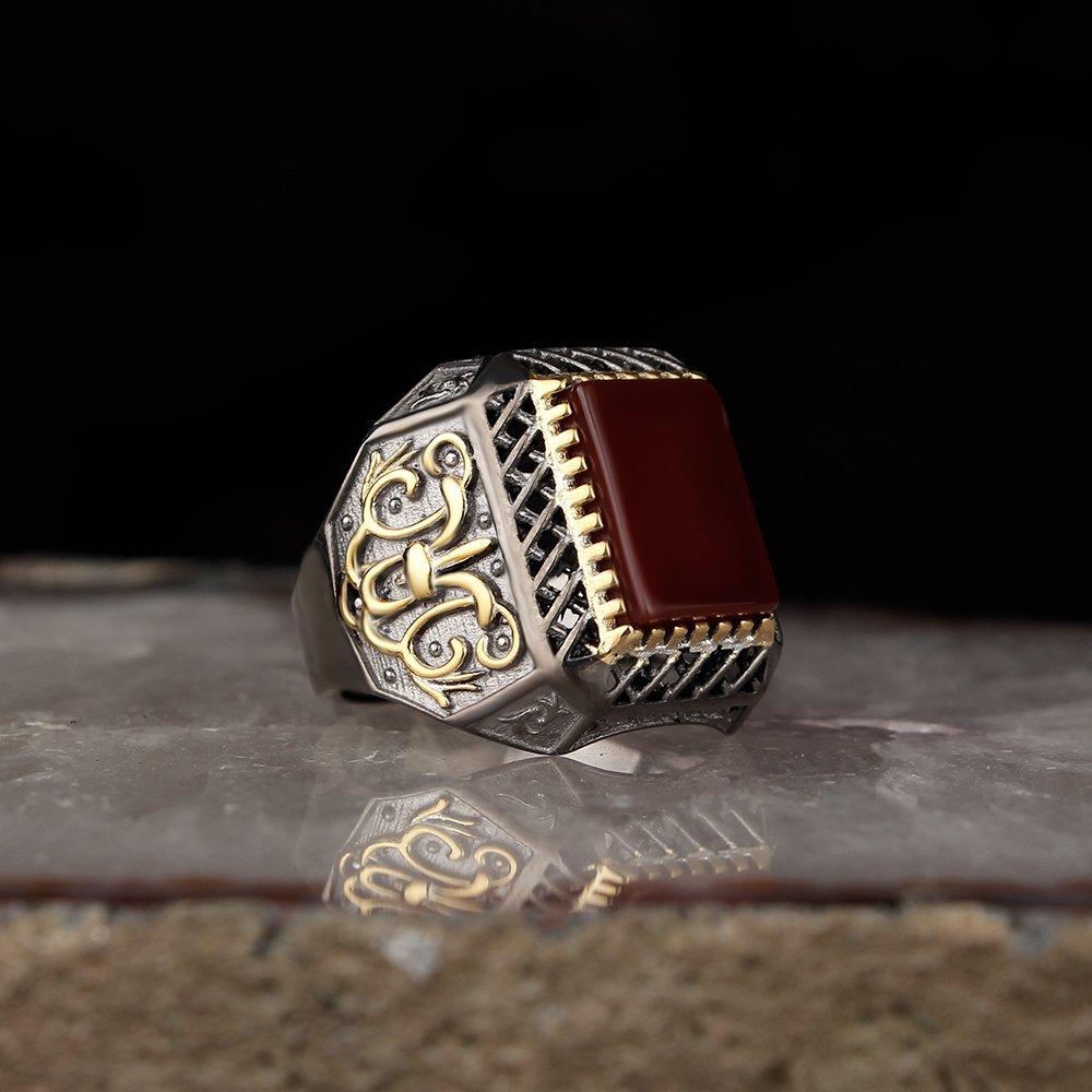 Мужское серебряное кольцо из натурального агата с родиевым покрытием 925 пробы