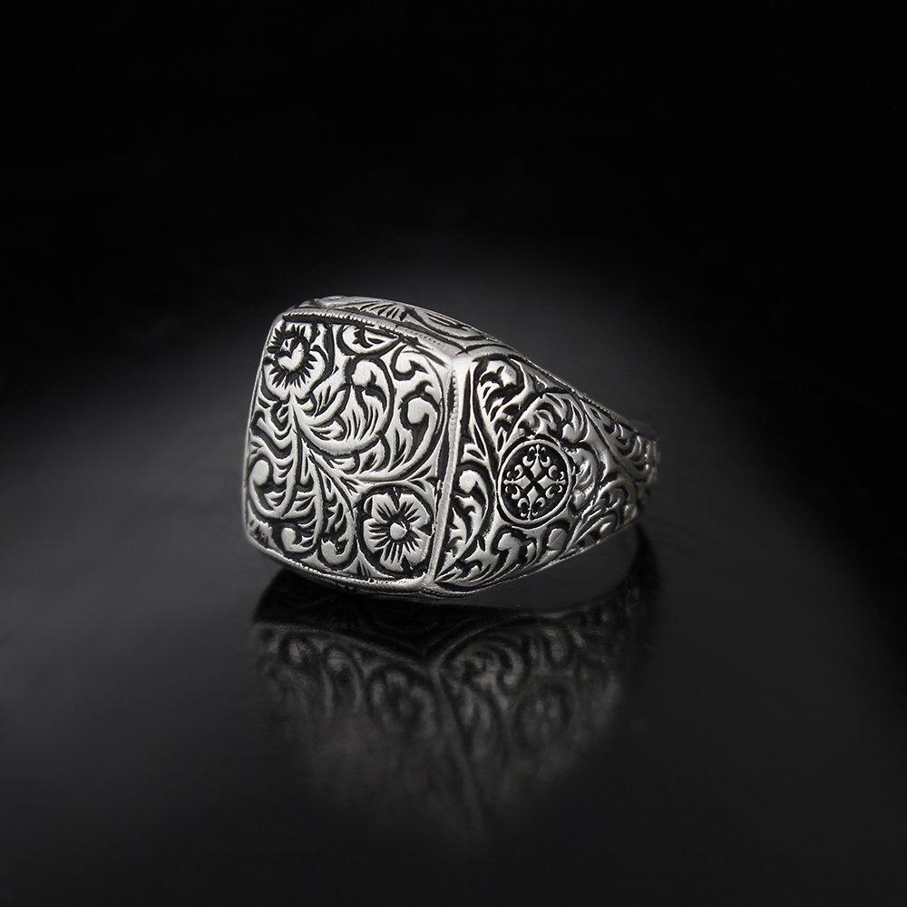 Серебряное мужское кольцо ручной работы с гравировкой 925 пробы