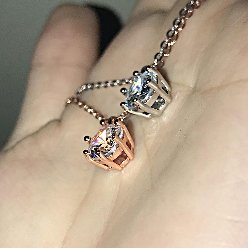 18-каратное розовое золото 2 карата с лабораторным бриллиантом, настоящее серебро 925 пробы, вечерние свадебные подвески, цепочка, ожерелье для женщин, ювелирные изделия