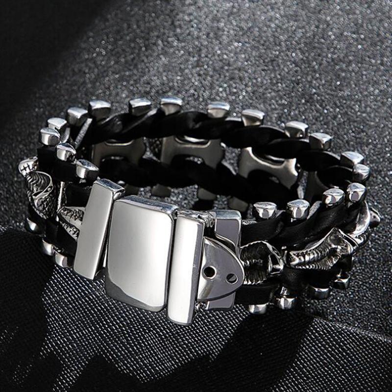 Мужской кожаный браслет мужской с черепом в виде змеи, винтажные украшения из нержавеющей стали, браслет-манжета, браслеты с пряжкой ремня