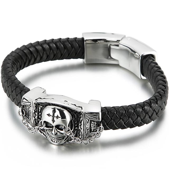 Кожаные браслеты в стиле панк-рок с черепом для мужчин, ювелирные изделия из нержавеющей стали 316L, аксессуары на руку Mannen