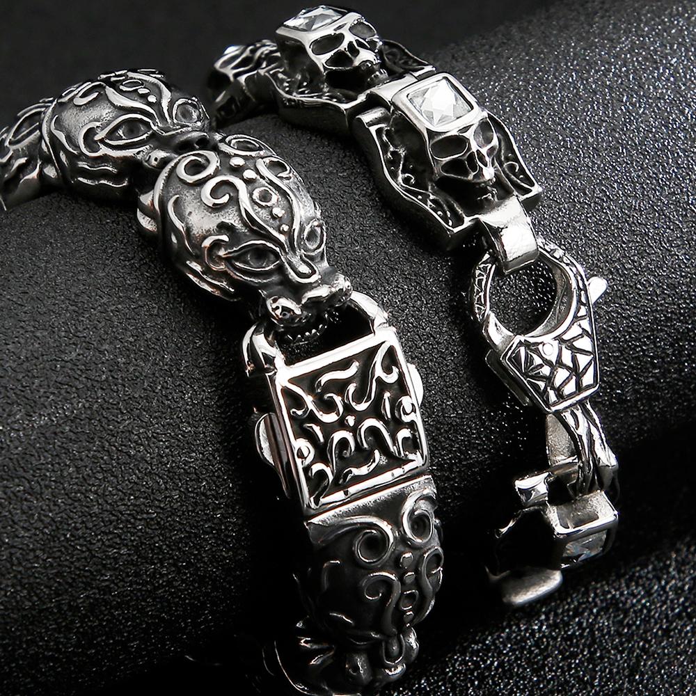 Готический браслет с черепом для мужчин из нержавеющей стали, 3D цепочка со скелетом, мужские браслеты для мужчин, мужественные наручные байкерские украшения в стиле стимпанк