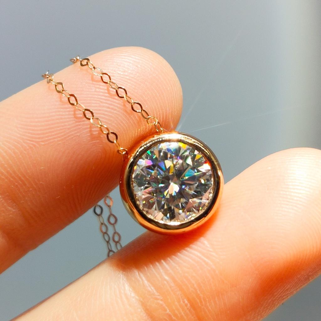 Серебро 925, оригинальное 18-каратное розовое золото, 1 карат, круглая бриллиантовая огранка, тест прошлого D, цвет, кулон с муассанитом, ожерелье Gfit