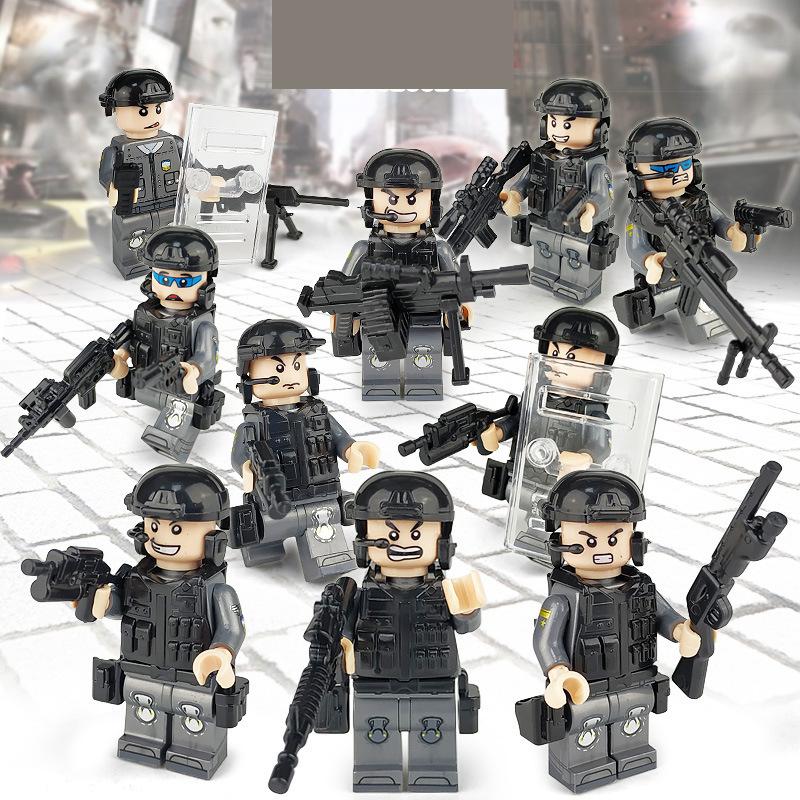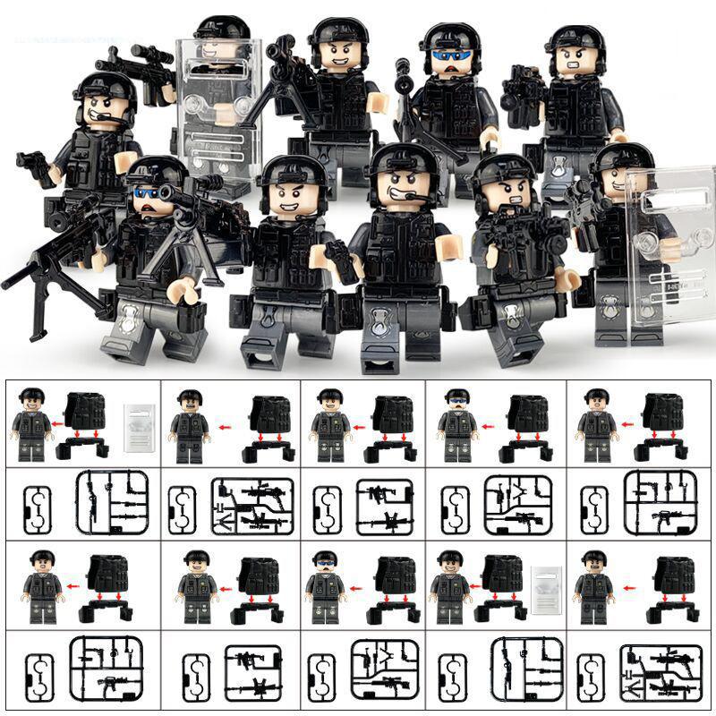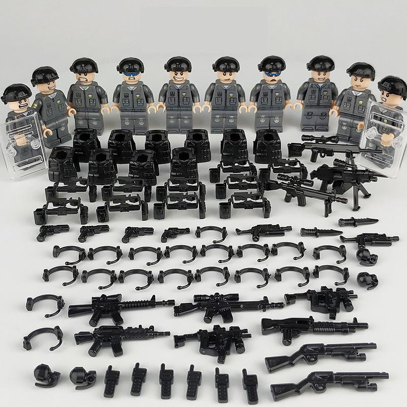820024 Городской спецназ, военные рации, пуленепробиваемый щит, строительные блоки