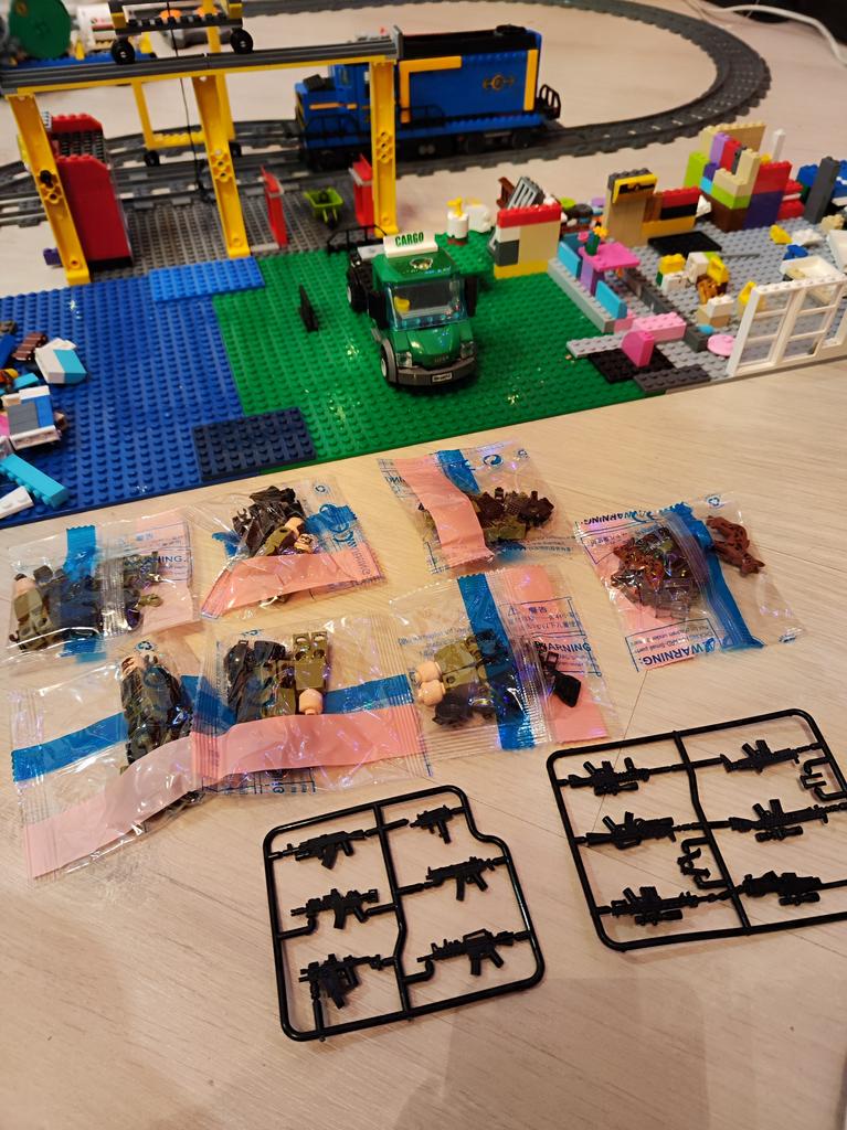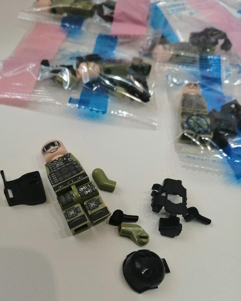 :-) Привет всем! Отличные lego военные человечки, дети довольны, рекомендую! Пришли 12 солдатиков, каждый разобран на части и в своем "домике" - запаяном пакетике. С ними дополнительные предметы (ружья, щиты и тд) и две собаки. Солдатики оболденные, каждая деталька, каждая мелочь, каждый мелкий рисунок, всё на них видно чётко! Вроде у них настоящие желеты, защитные головные уборы и тд. Будем заказывать ещё для пополнения коллекции. Пришли солдатики в сборной посылке. Ждали чуть более трех недель. Трек живой. :-) Самых увлекательных и интересных покупок для ваших детей, а так же мира и добра вашим семьям! :-) Ссылочка внизу