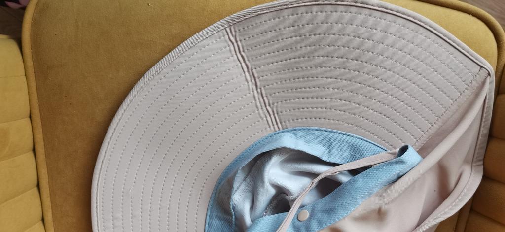 Впечатлена! Козырек чуть погладила утюгом. Складка была на половине, так упаковали, иначе не переслать. Ткань синтетика, опасаюсь, как бы не потела голова на солнце. Пока не выходила "в свет". Жду погоды.