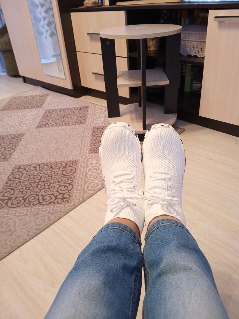 Ориентировалась на отзывы и на свой 36 размер заказала 37. И не ошиблась. Все прекрасно. Кроссовки сказочные, красивые. Аккуратно сидят на ноге. В них удобно, ногам комфортно. Верх текстиль, поэтому идут на сухую погоду. Но очень красивые. Спасибо!
