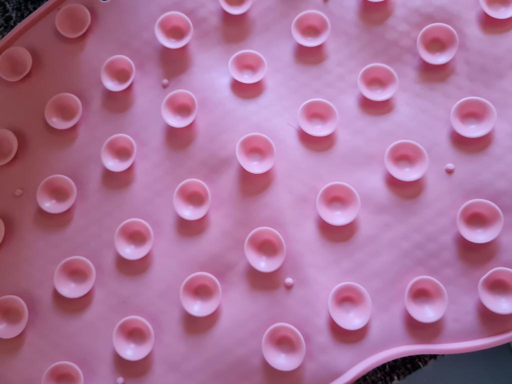 Маленький размер, буквально на 2 ладони. Как им помыть ноги, если на этот коврик двумя ногами не встанешь? А про спину вообще молчу - это как зубной щеткой вместо мочалки. Совершенно невнятные волоски, совсем не упругие, не торчат, а смиренно лежат вповалку. Может еще воспрянут, но такими, какие они есть, мне кажется, ничего не помоешь. А присоски - это отдельная песня. НИ ОДНА НЕ присосалась ни к стенке ванны, ни к кафелю. Ради правды надо сказать, что удержание присосками все-таки было в течение 3-15 секунд, потом полный отлип. Так что на этом коврике скорее убьешься, чем ноги помоешь. Поэтому после душа я без сожаления поместил этот коврик в помойное ведро.